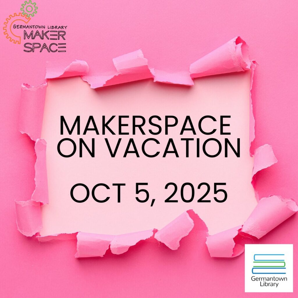 Due to the Germantown Library 5k Race on October 5th (the first Sunday), Makerspace will be on vacation that day. We’ll be back on the third Sunday, October 19th!