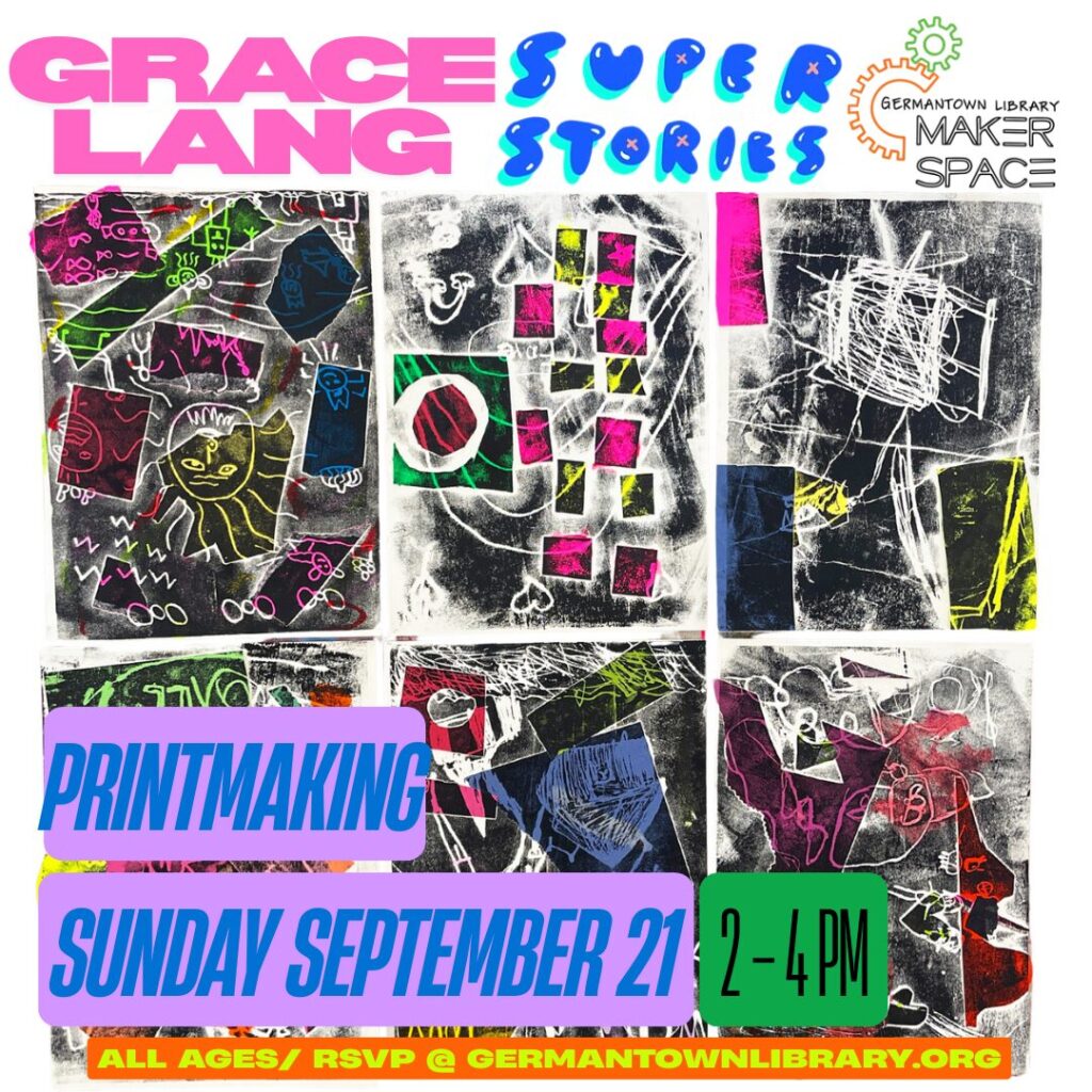 Join Grace Lang from Super-Stories for an afternoon of mixed media printmaking! These layered pieces will be created using a combination of collage, drawing, carving, and printing with styrofoam plates. By following along with some very simple, but satisfying steps, participants of all ages will experience the magic of image transfer, potentially using their carved plates to create multiple prints of their images!