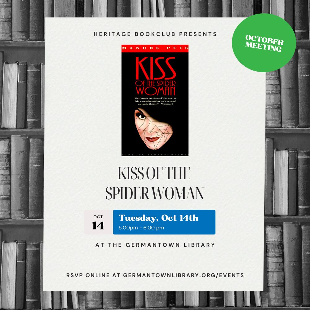 Germantown Library 31 Palatine Park Rd, Germantown, NY, United StatesHey book lovers! We have a date to talk about Kiss of the Spider Woman: Tuesday, October 14 at 5pm on the main floor, or via Zoom We’d love to dive into the original novel by Manuel Puig, but if you’d like to discuss the play adaptation and/or the 1985 film, that’s welcome too. We’re […]